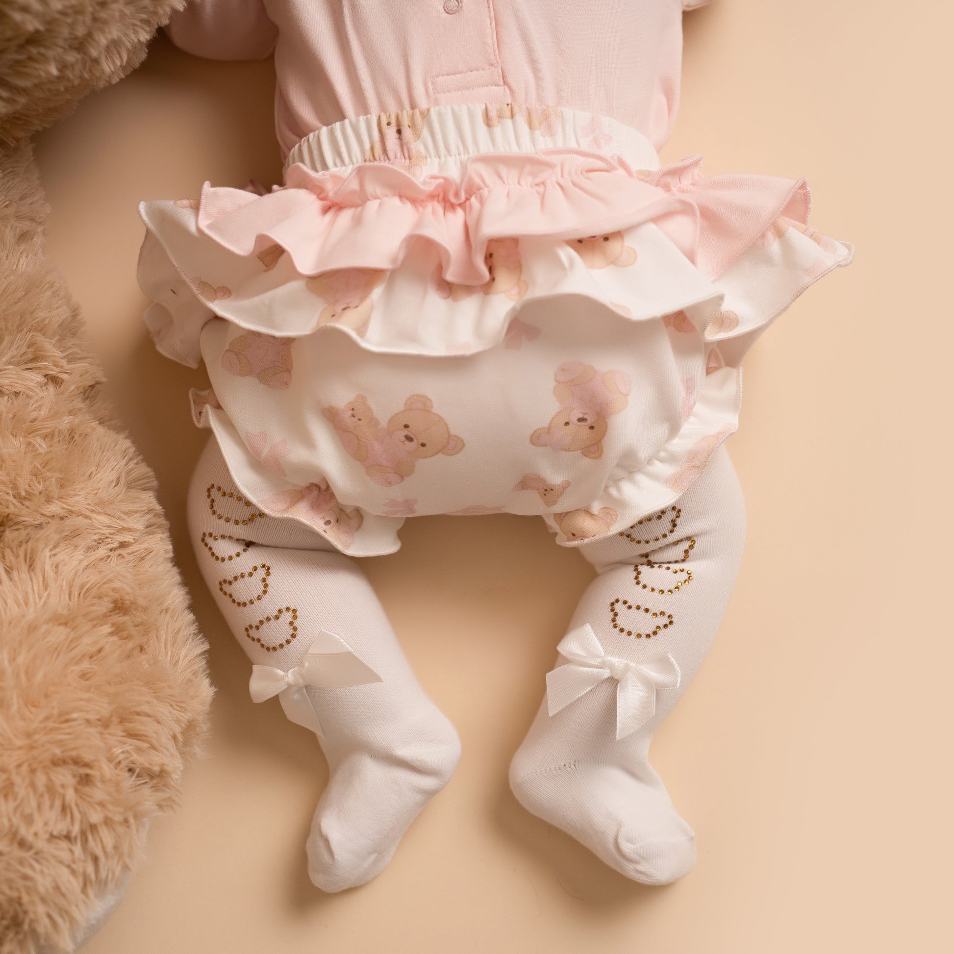 The Gladys tights feature diamante teddies and cute bow detail, perfect for adding that finishing touch to any Winter outfit.