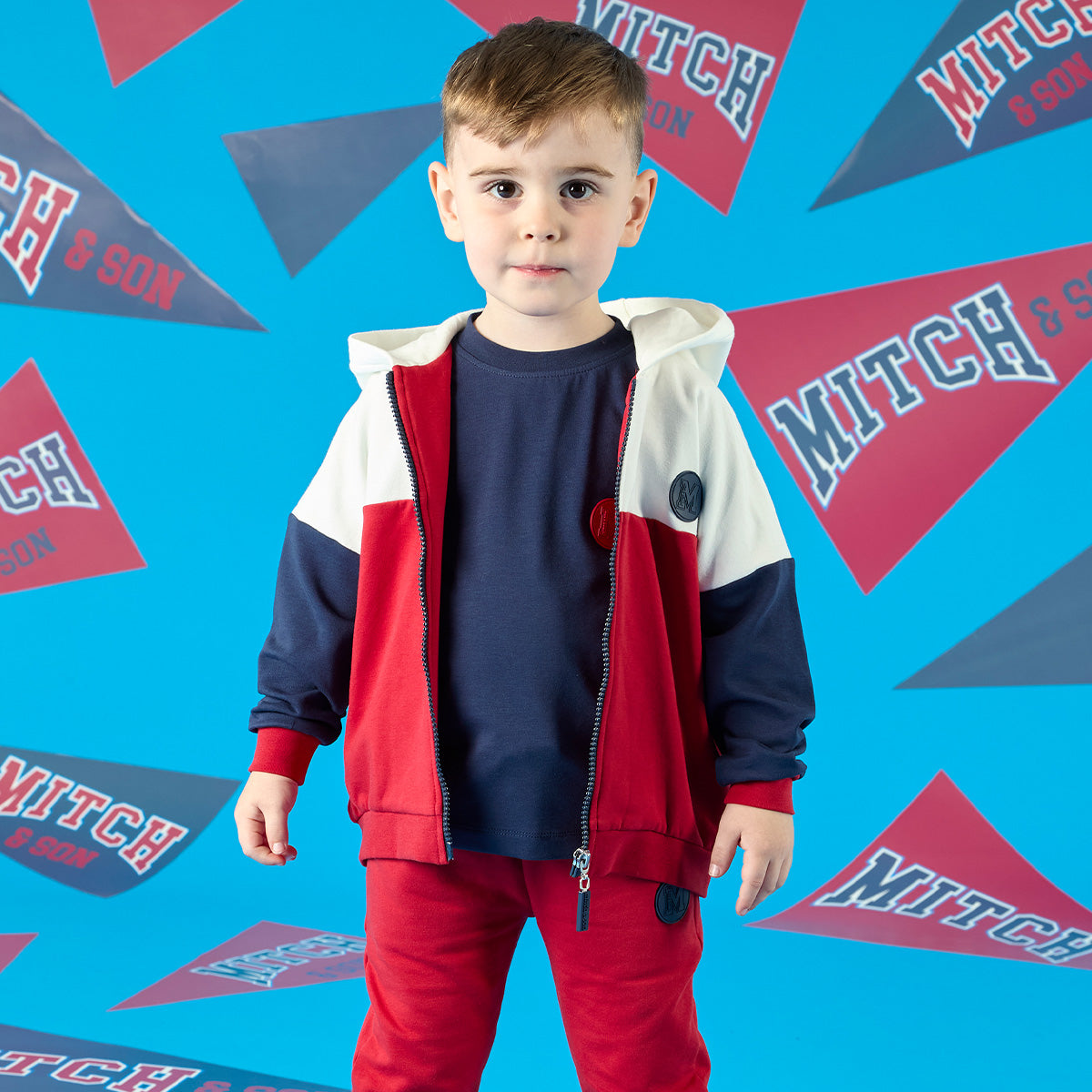 The Blake tracksuit comes with colour block design hooded zip-up top with a contrast navy rubber logo badge on the front. The joggers have matching colour block design, rubber logo badge and an elasticated waistband for a comfortable fit.