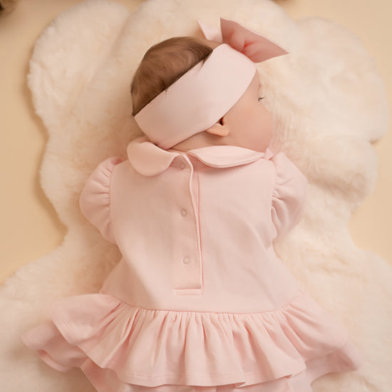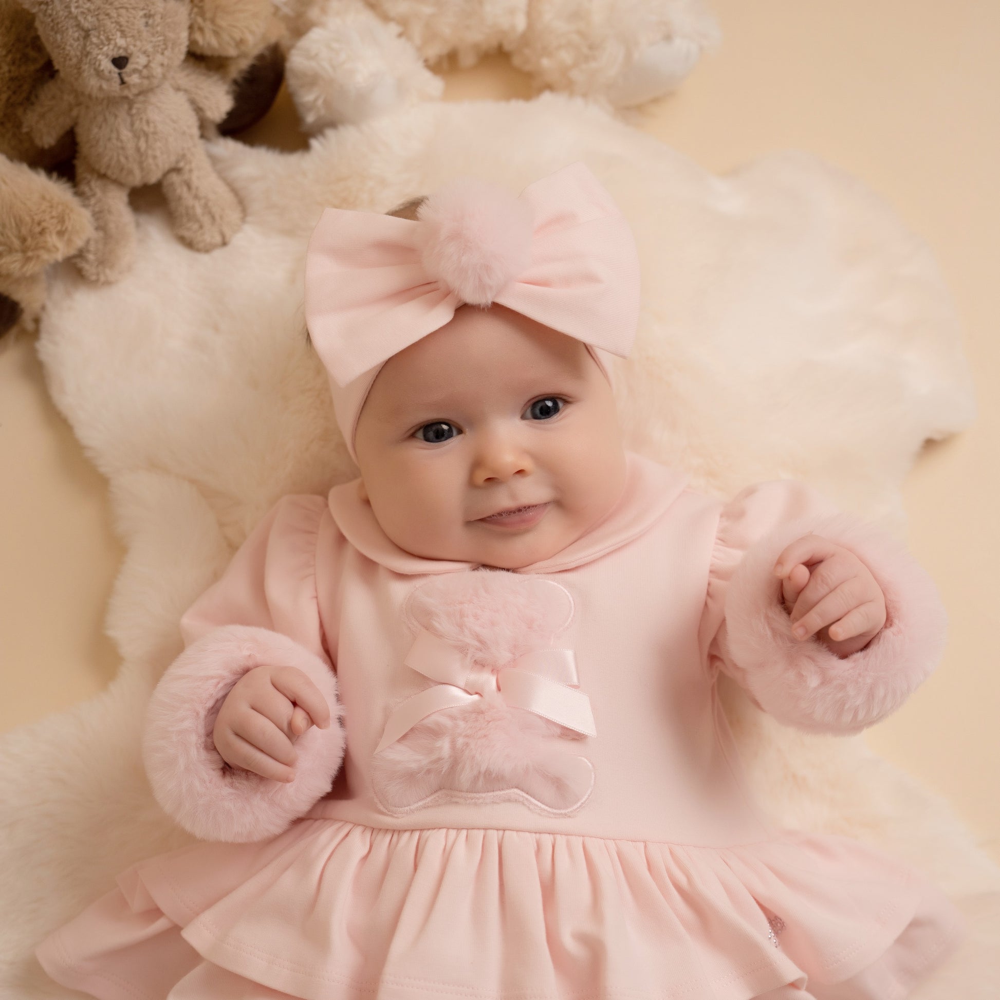 The perfect finishing touch to your little ones outfit, featuring a pink bow and pom pom to complete the look!