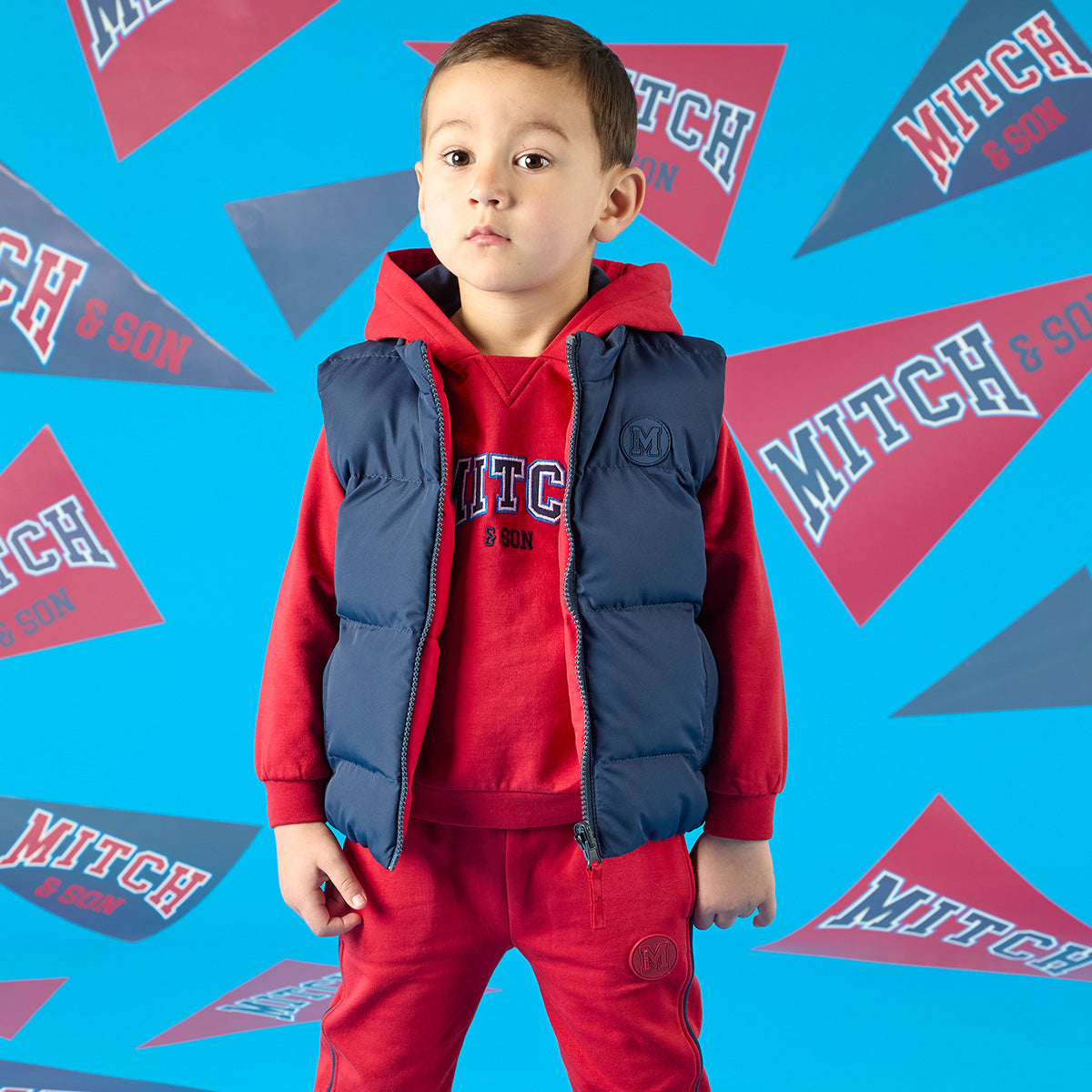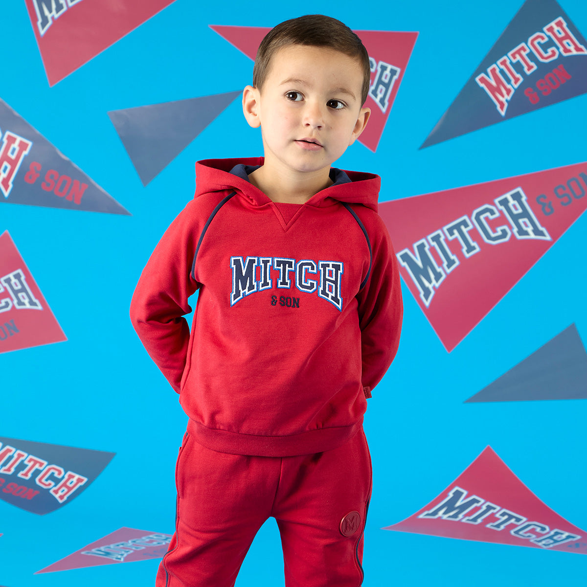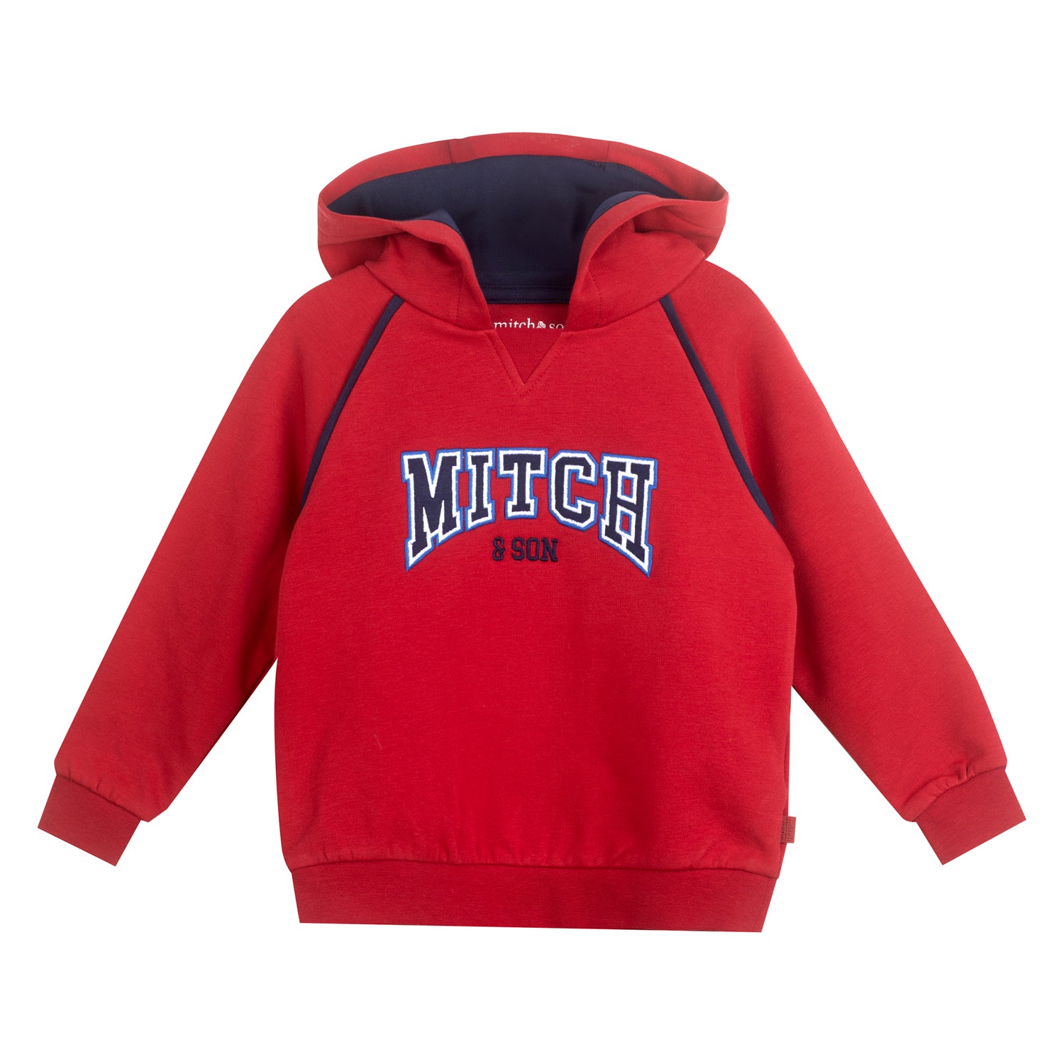 The Benny tracksuit comes with a raglan sleeve hooded sweatshirt featuring a embroidered and applique logo on the front with contrast navy pipping details and hood lining. The joggers have matching contrast piping, rubber logo badge and an elasticated waistband for a comfortable fit.