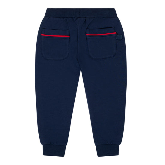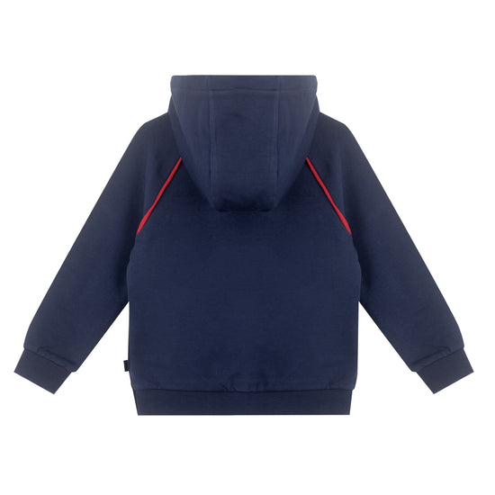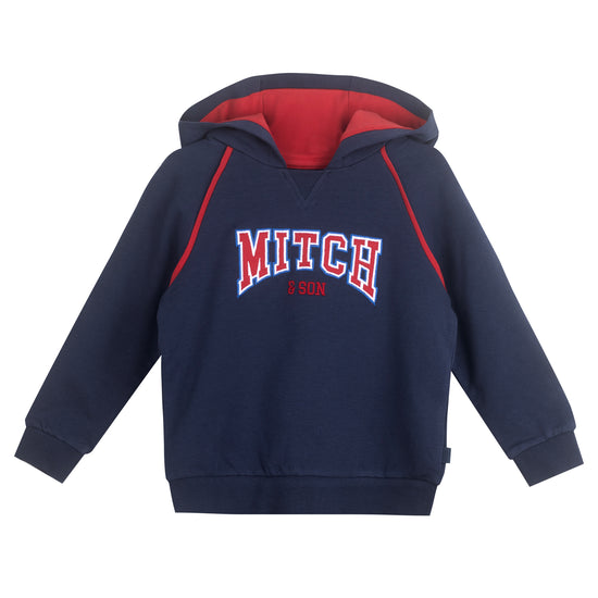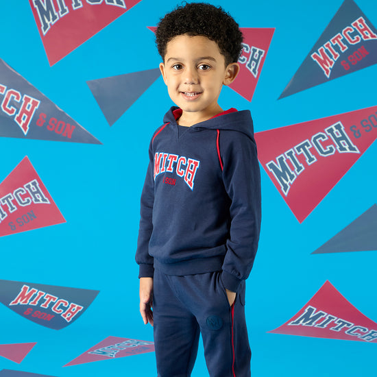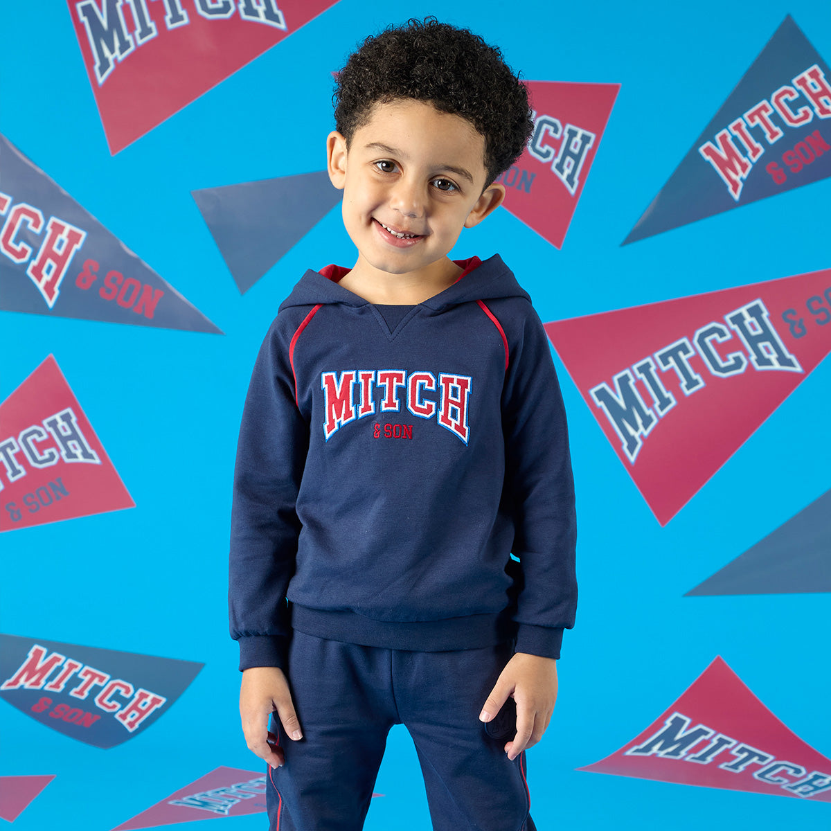 The Benny tracksuit comes with a raglan sleeve hooded sweatshirt featuring a embroidered and applique logo on the front with contrast red pipping details and hood lining. The joggers have matching contrast piping, rubber logo badge and an elasticated waistband for a comfortable fit.