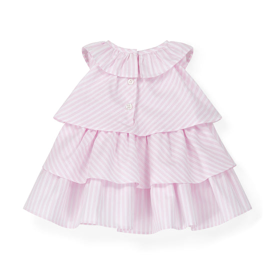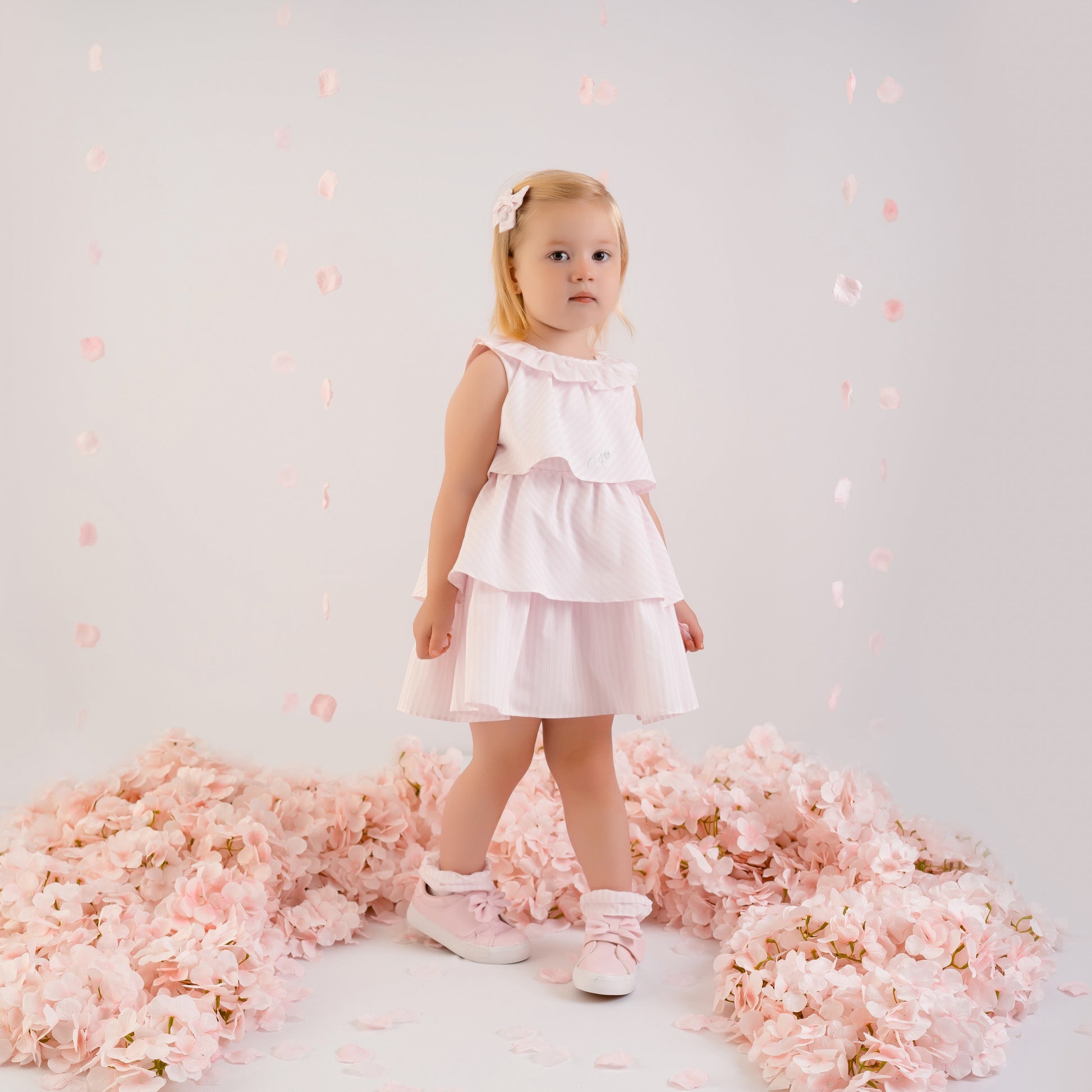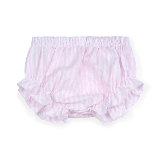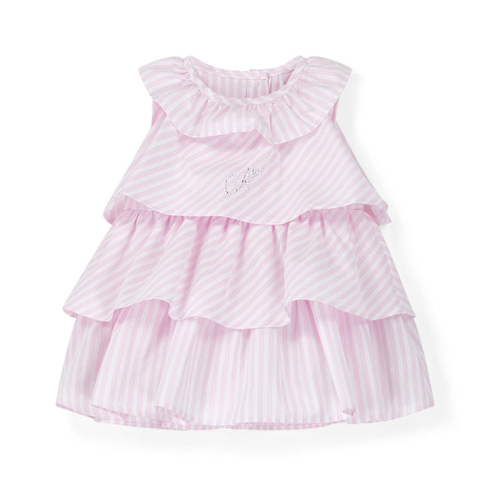 Introducing the Aria dress, made with stripe seersucker, this cute frilly dress features diamante branding and matching knickers.