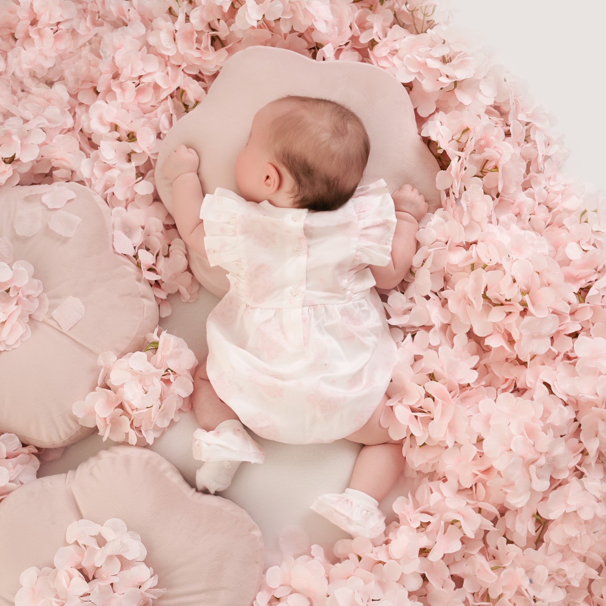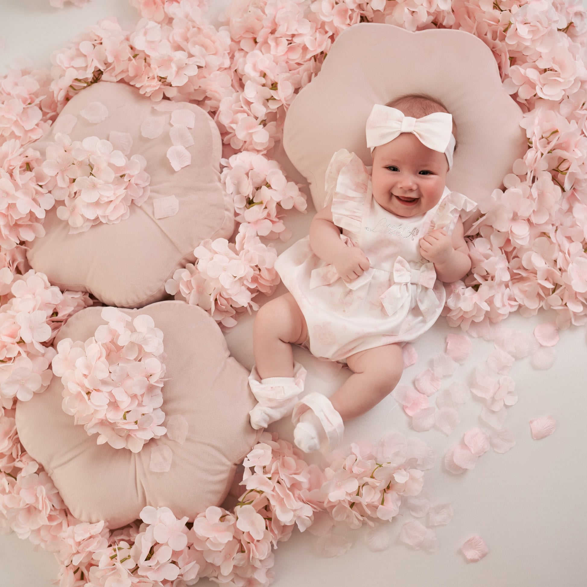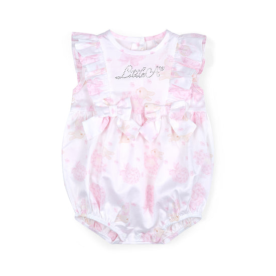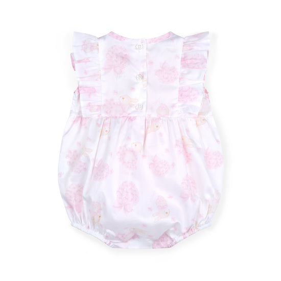 The Amira romper is made with cute hydrangea print poplin fabric and features frill and bow details finished with diamante branding.