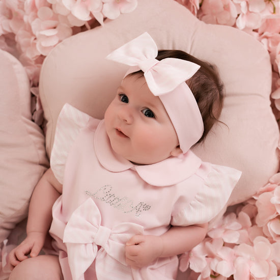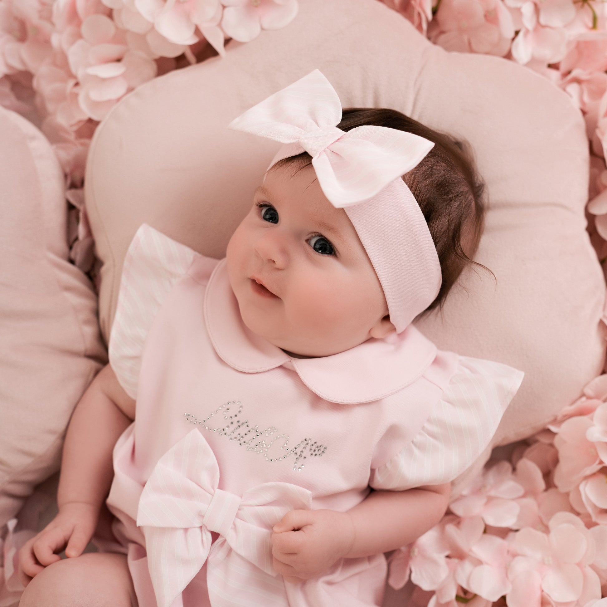 This cute Ava headband features a stripe seersucker bow and is perfect for completing any look in the collection