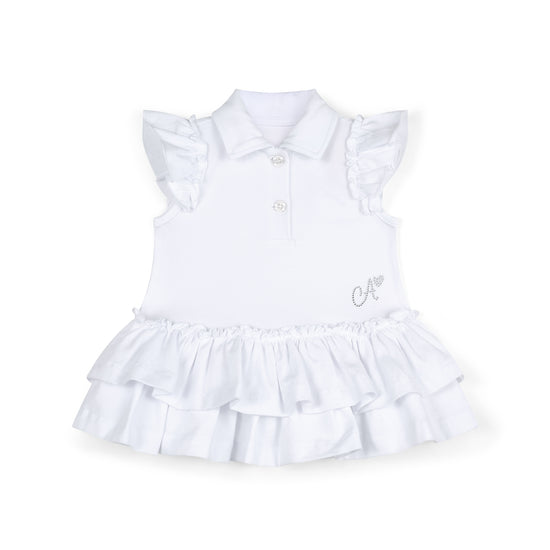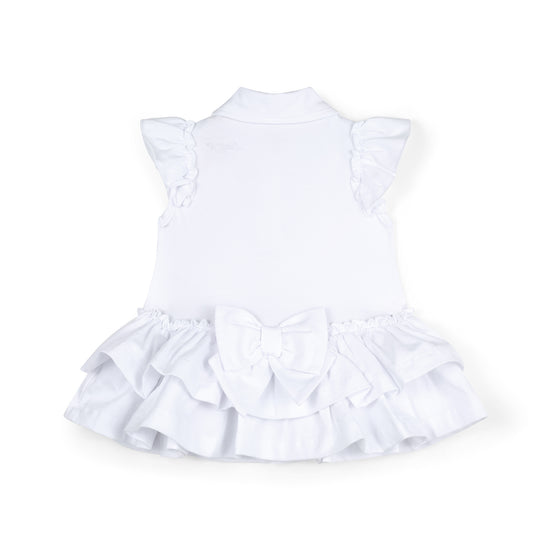 The must have Beau jersey frill tennis dress features cute bow detail on the back and diamante branding.