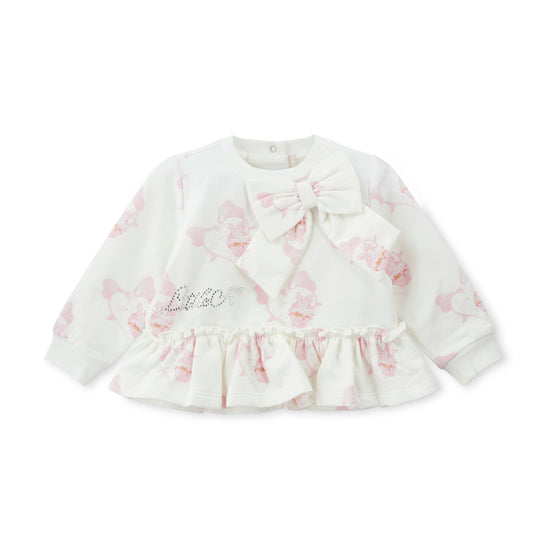 This Jasmine tracksuit features a top with a frilly hem and a cute applique bow at the neck. The leggings match with side frills, making this a super stylish and comfy addition to your wardrobe!