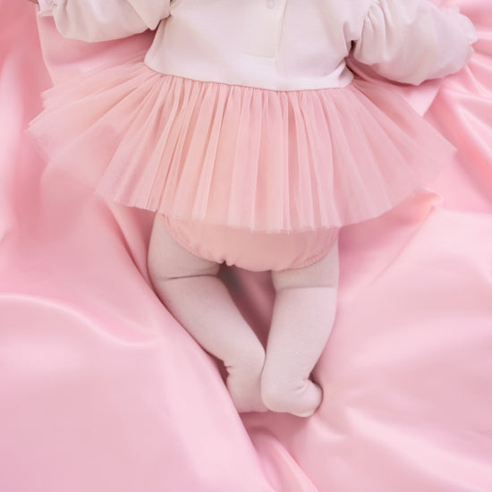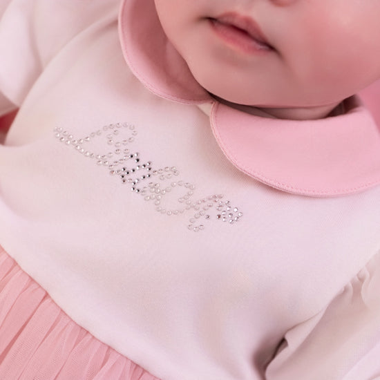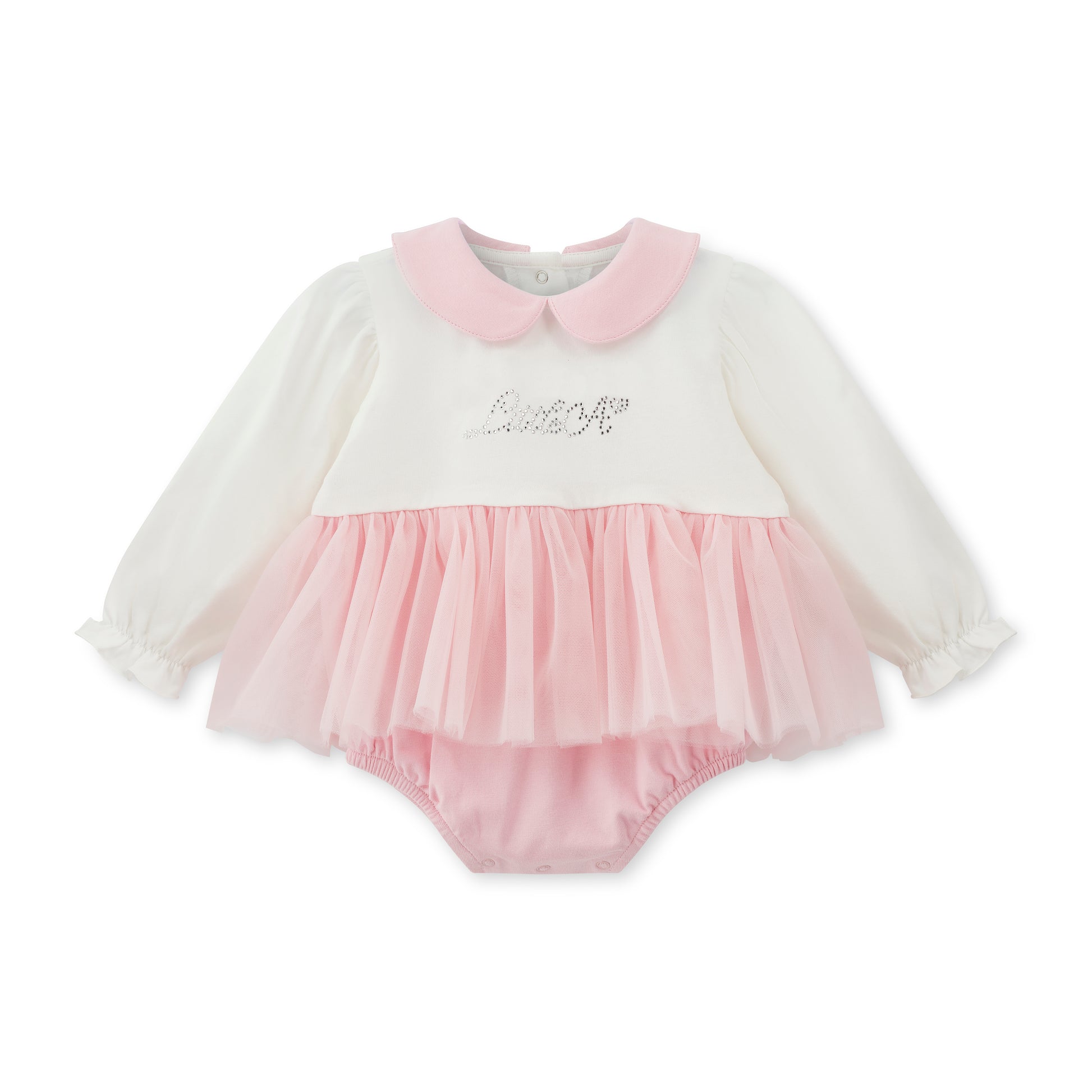 The Kimberly romper features the sweetest tulle skirt and pink peter pan collar. Finished with diamante branding.