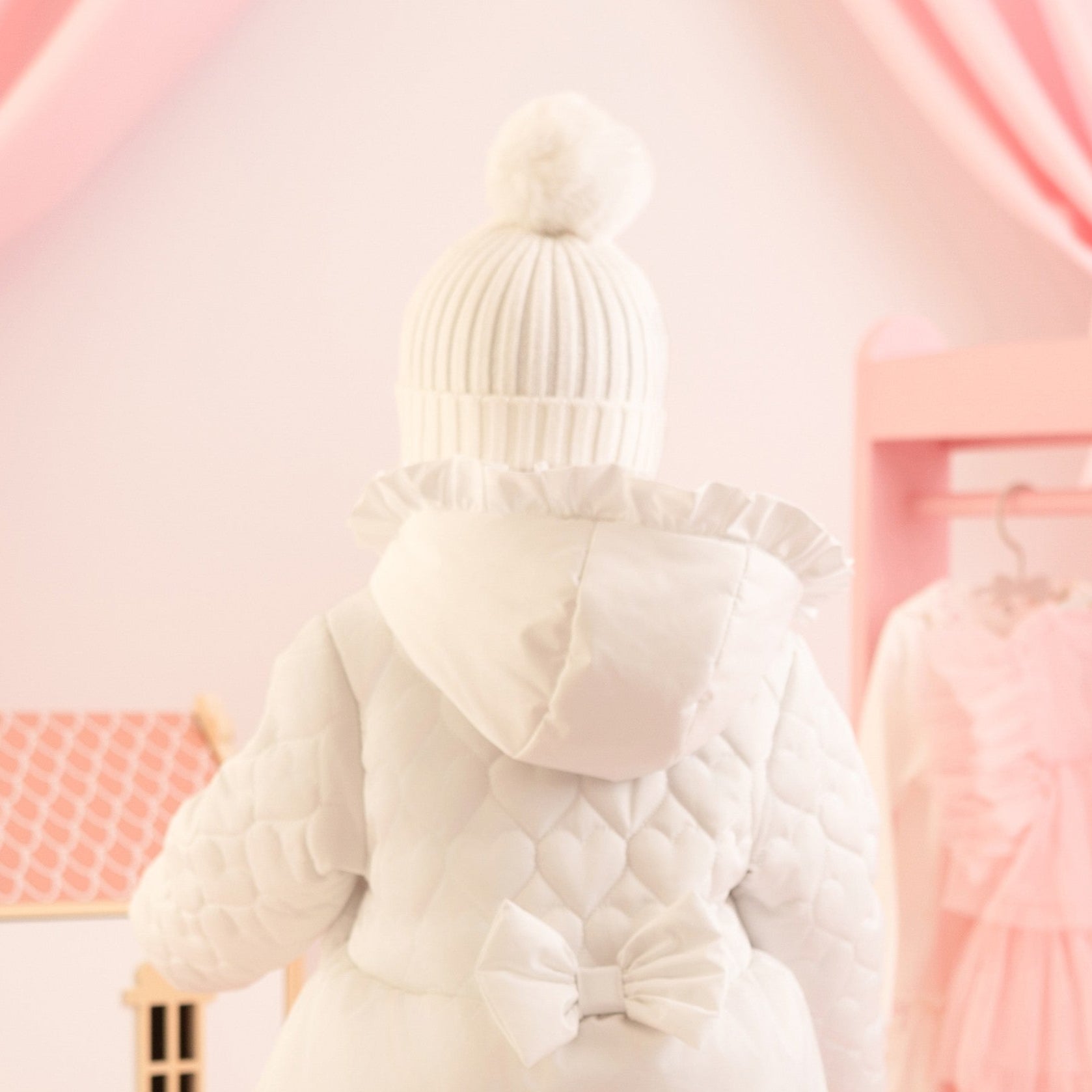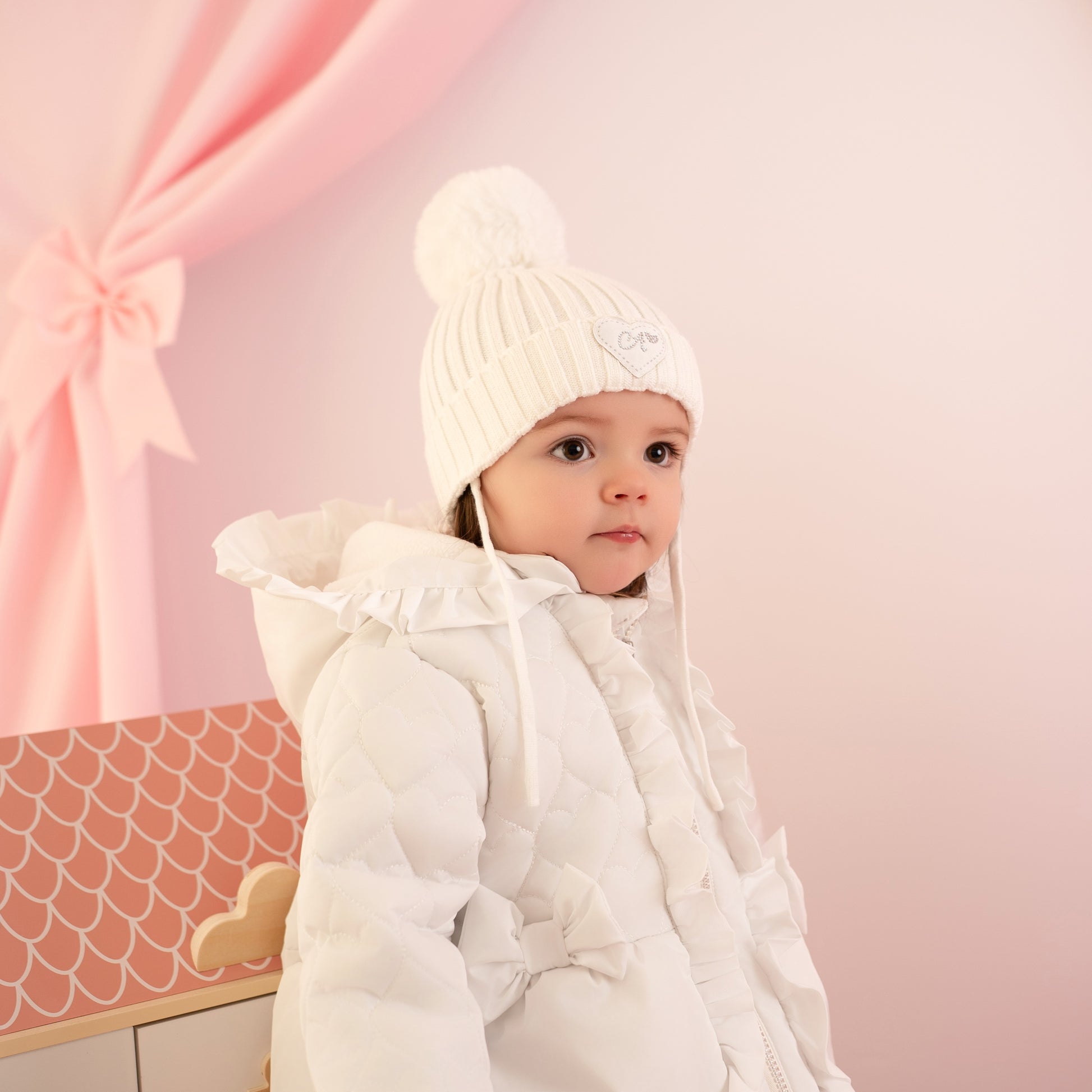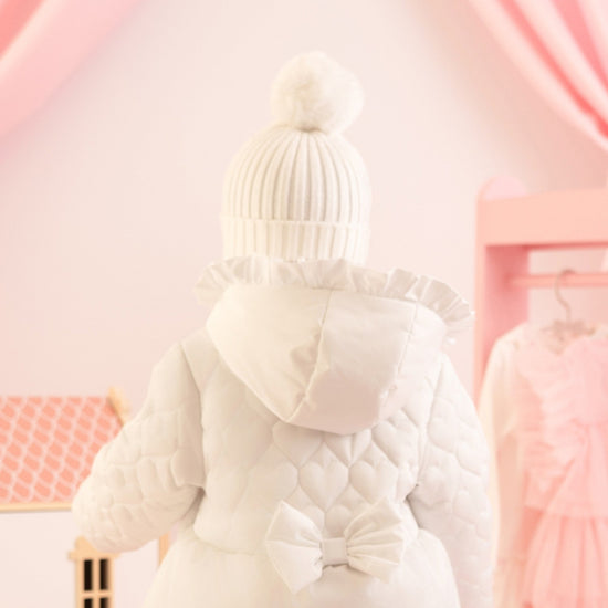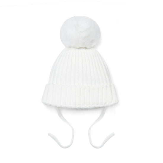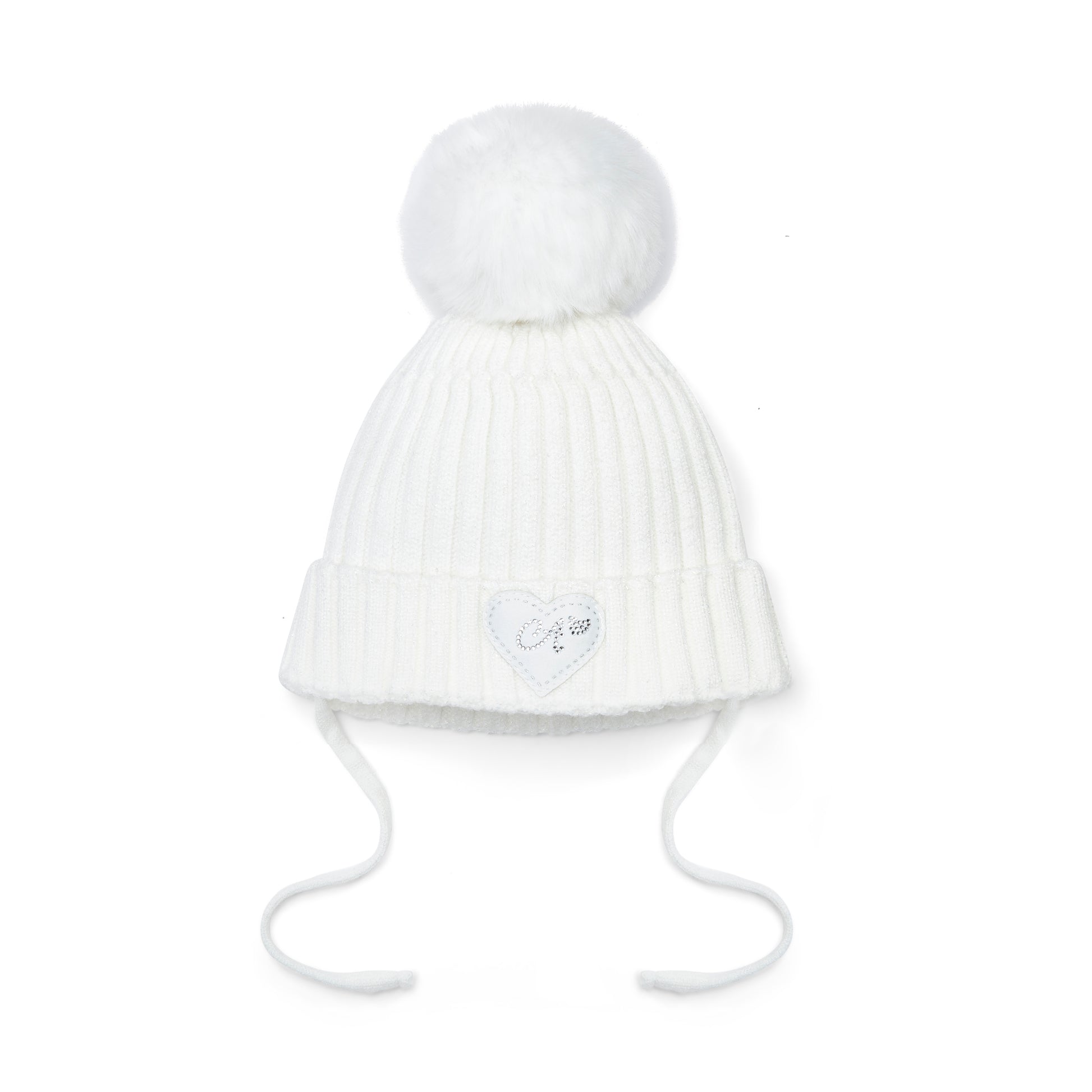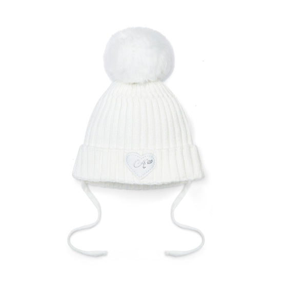 The Kamila knitted hat features a faux fur pom pom and diamante heart logo. Perfect for winter days!