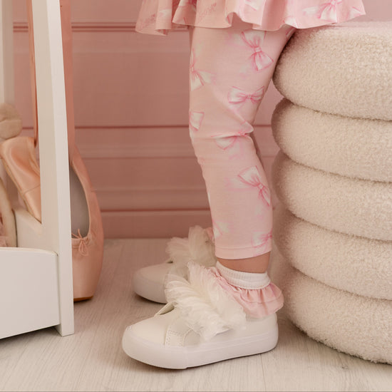 Complete your little one's look with the Odette ankle socks finished with bow print frills.