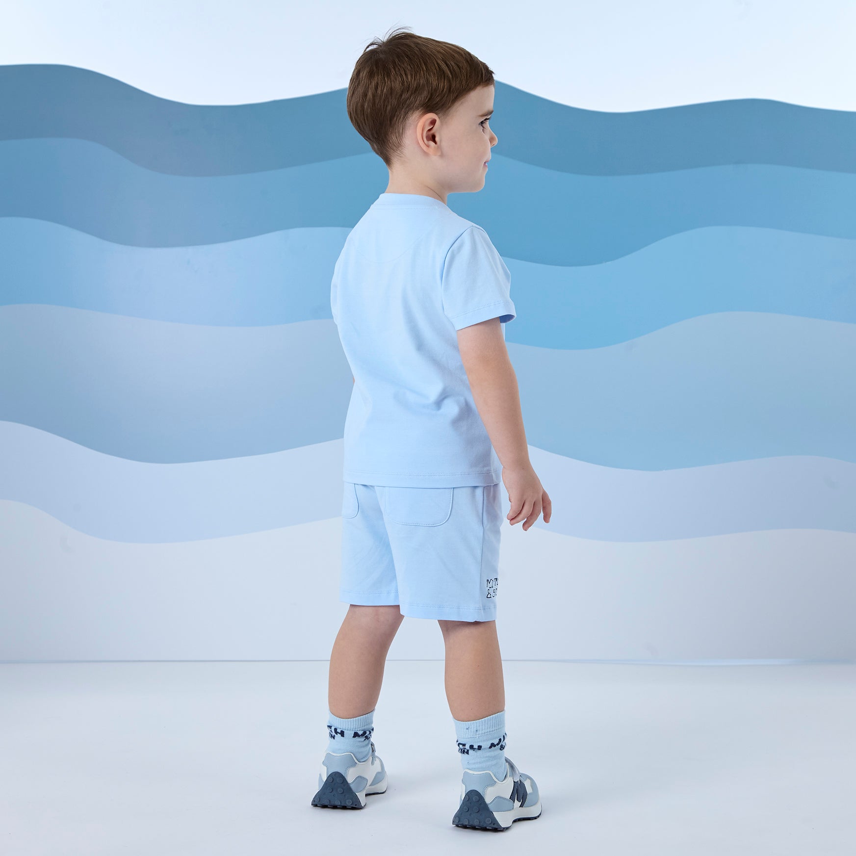 The Franklin set is made of cotton jersey and includes a t-shirt and shorts with printed logo artwork on both.