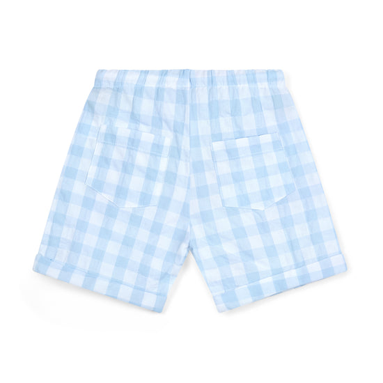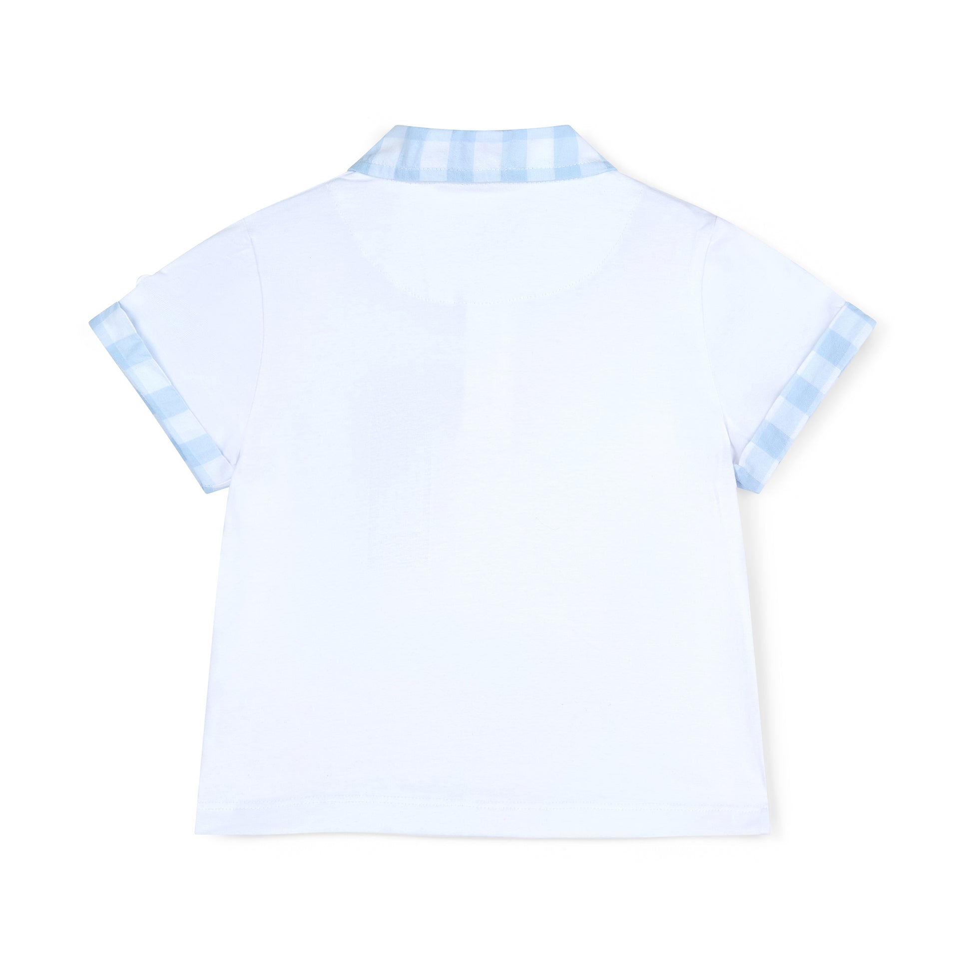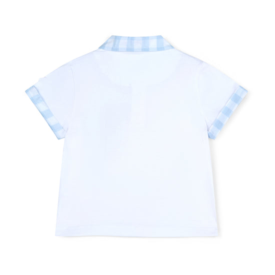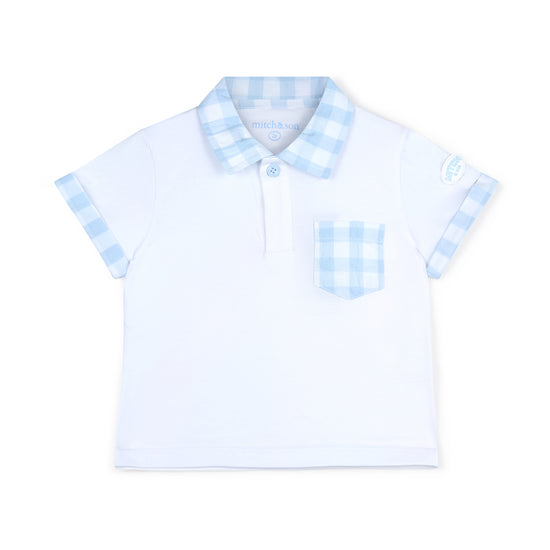 Introducing the Fabian set, made with cotton jersey, the polo top features contrast gingham collar and pocket paired with contrast gingham shorts featuring rubber logo badge on both.