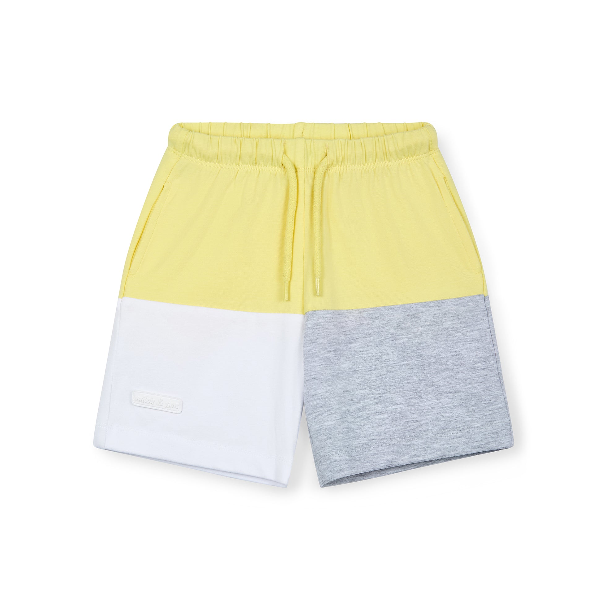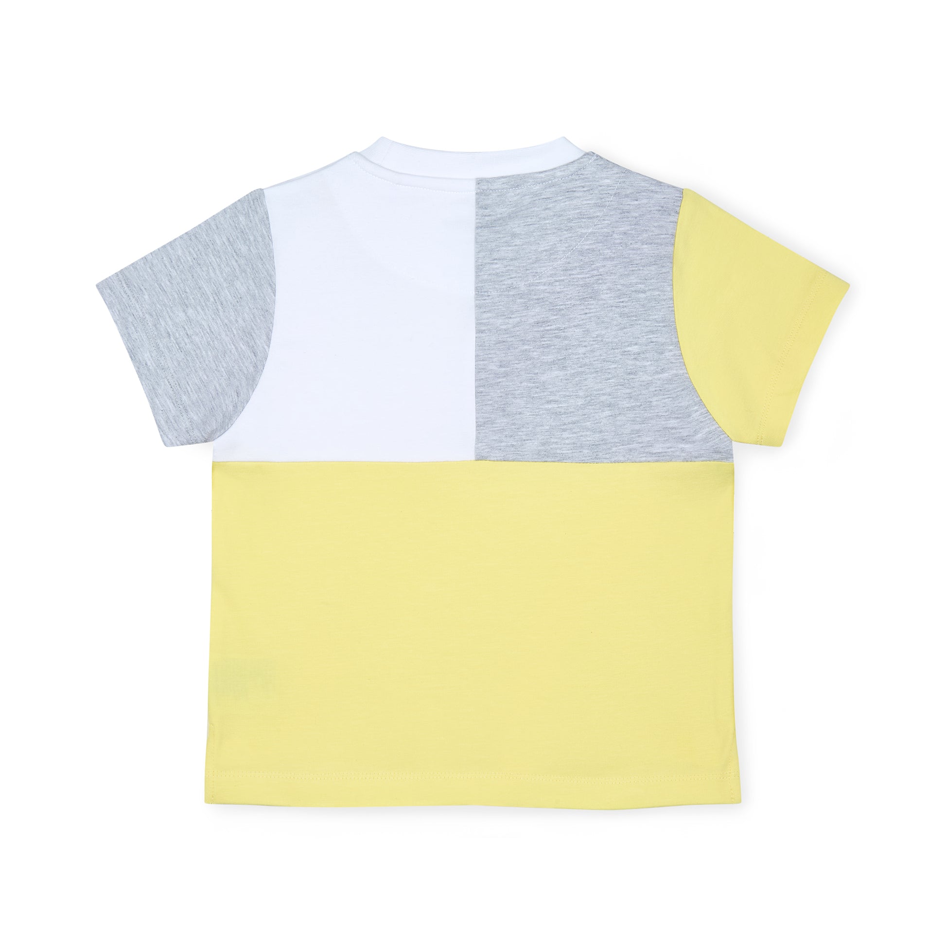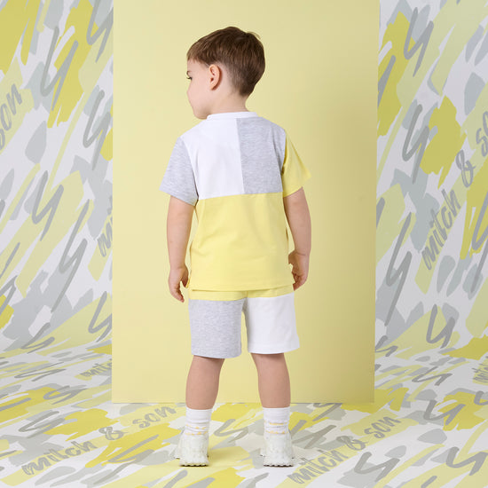 The Gray cotton jersey t-shirt and short set features a contrast colour block design and is finished with rubber logo badge detail.