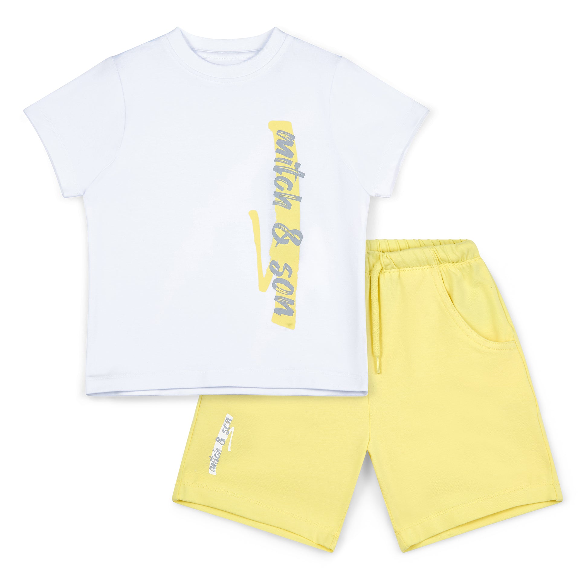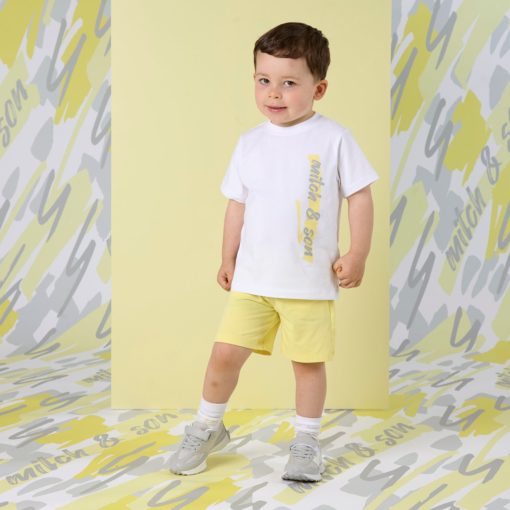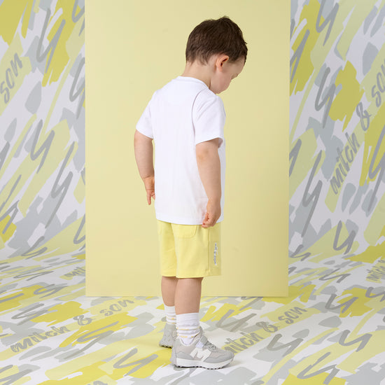 The Garrison cotton jersey t-shirt and short set features large printed doodle artwork on the front paired with contrast lemon shorts with printed logo artwork