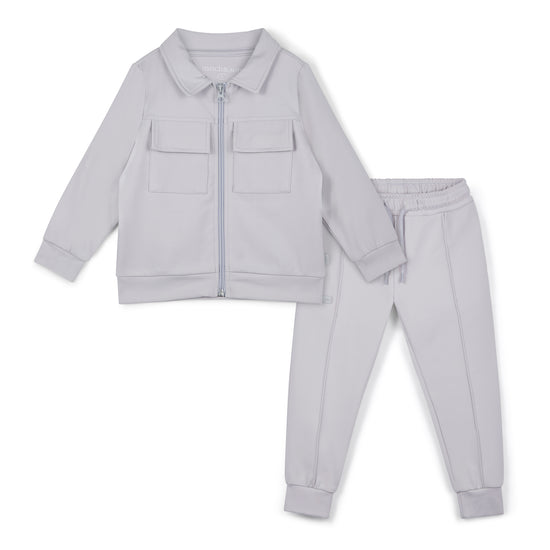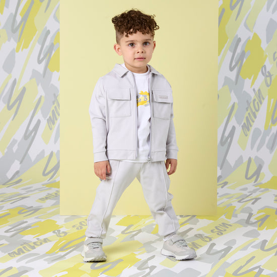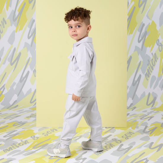 Introducing the Grant set, made with soft touch sweat and includes an overshirt with pocket detail paired with matching joggers with pintuck details finished with rubber logo badge on both.