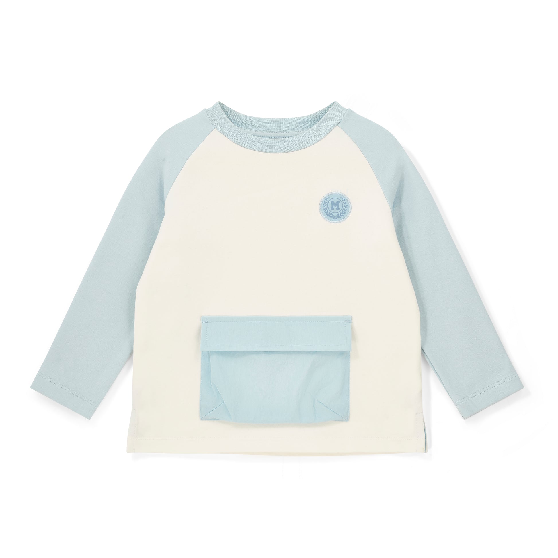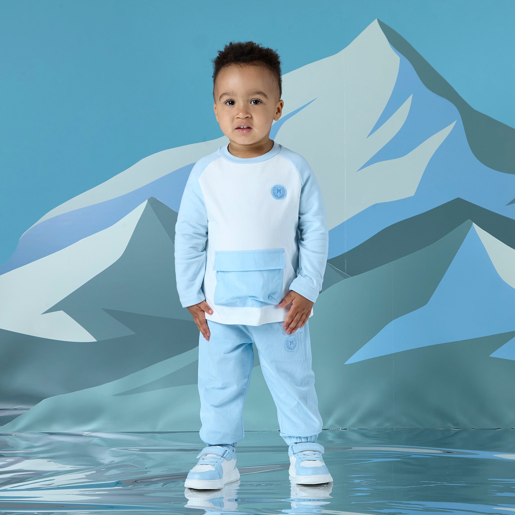 The Jasper Sweatshirt features a soft touch raglan crewneck with contrast blue sleeves. The nylon pocket detailing and logo badge on the front adds the finishing touches to this look.