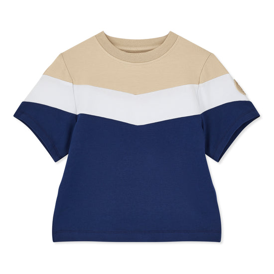 The Paco Set features a soft cotton jersey T-shirt with cut & sew panels across the chest, paired with matching shorts for a coordinated look. Finished with a logo patch detail. Available in red and navy colourways.