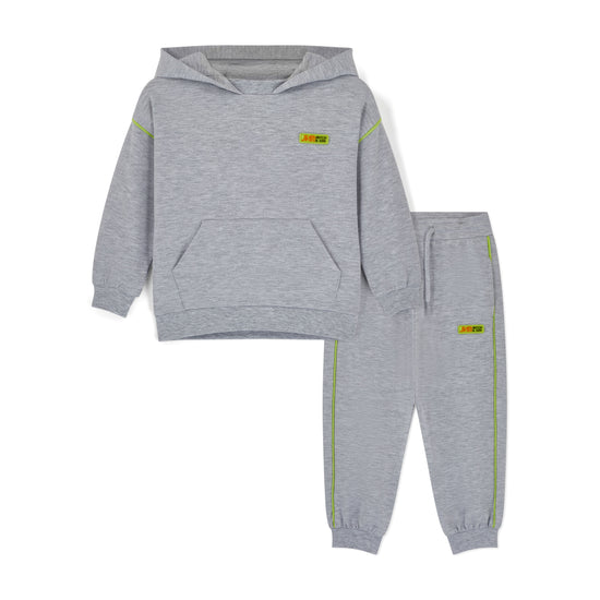 The Reese hooded tracksuit is made with soft touch fabric and features kangaroo pocket and is paired with matching joggers finished with rubber logo badge on both.