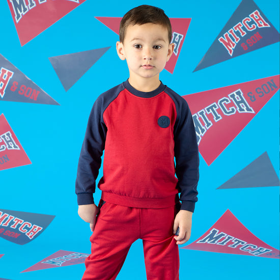 The Brian tracksuit comes with a raglan sleeve sweatshirt featuring contrast sleeves and rubber logo badge on the front. The joggers have matching contrast details and an elasticated waistband for a comfortable fit.