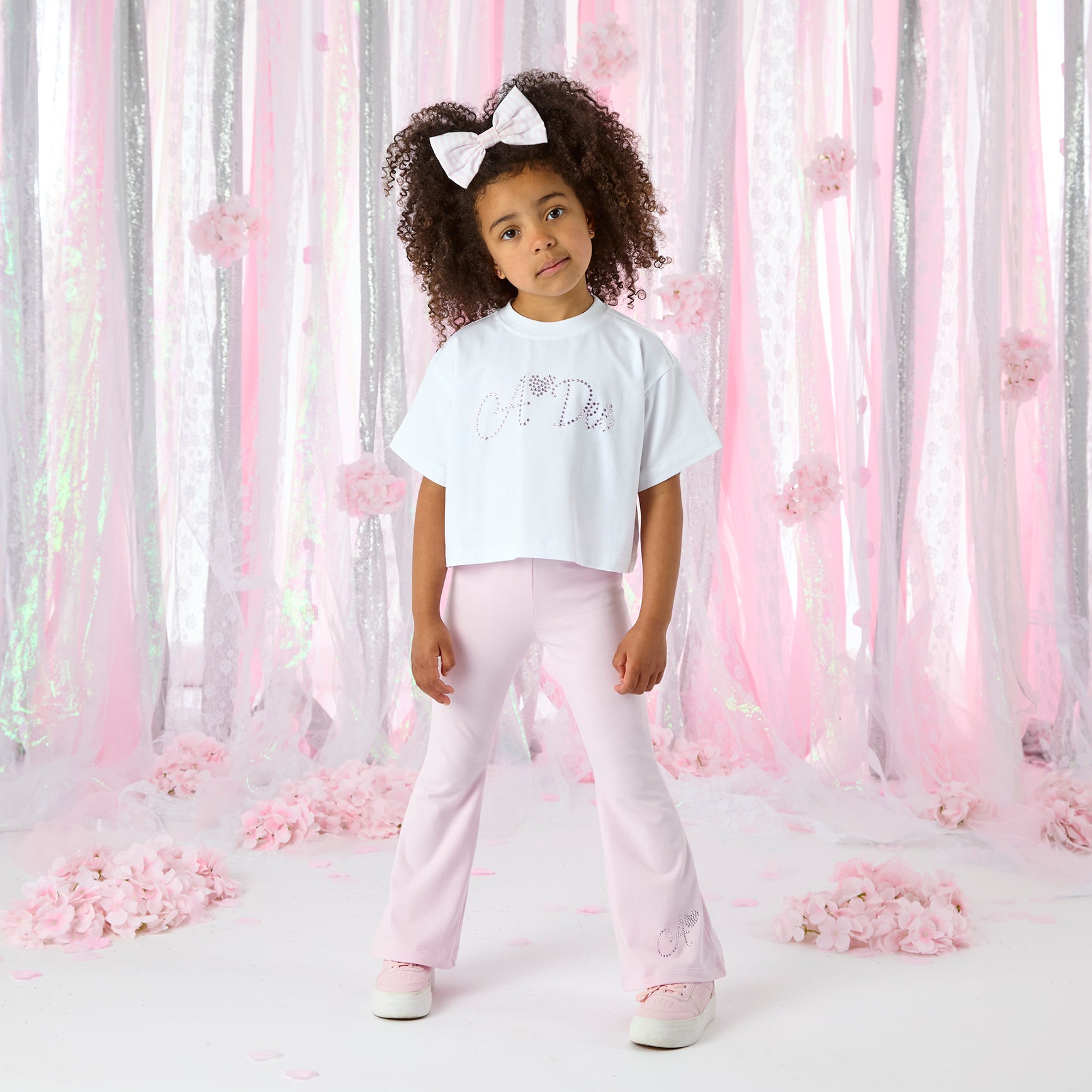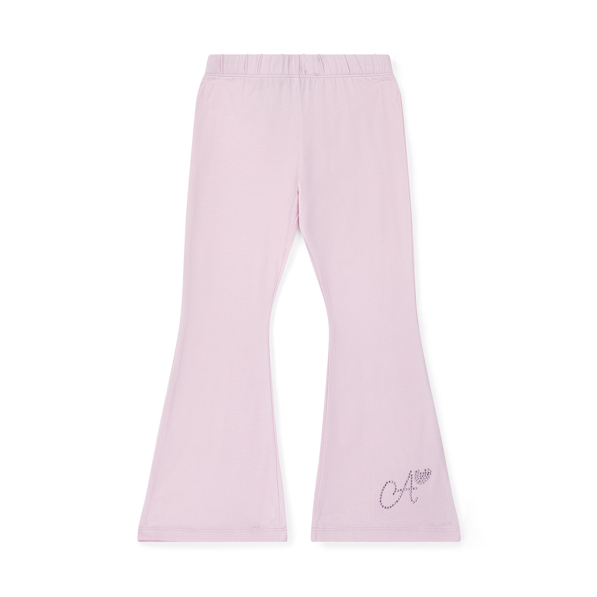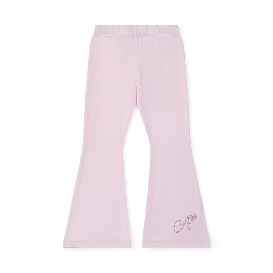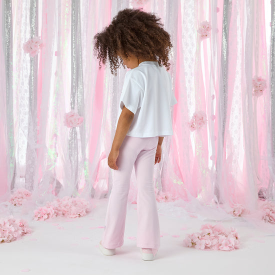 Keep it simple and stylish with the Chelsea set, featuring a white t-shirt and pink flared trousers with diamante logo detail on both.