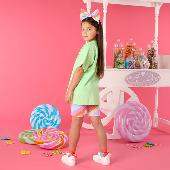 These Evie ankle socks are the perfect addition to any outfit in the Lollipop Love collection, made in colourful stripe with orange satin bows.