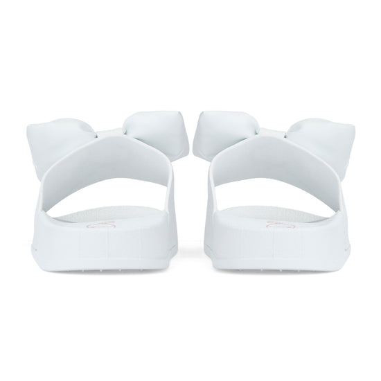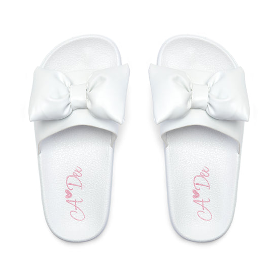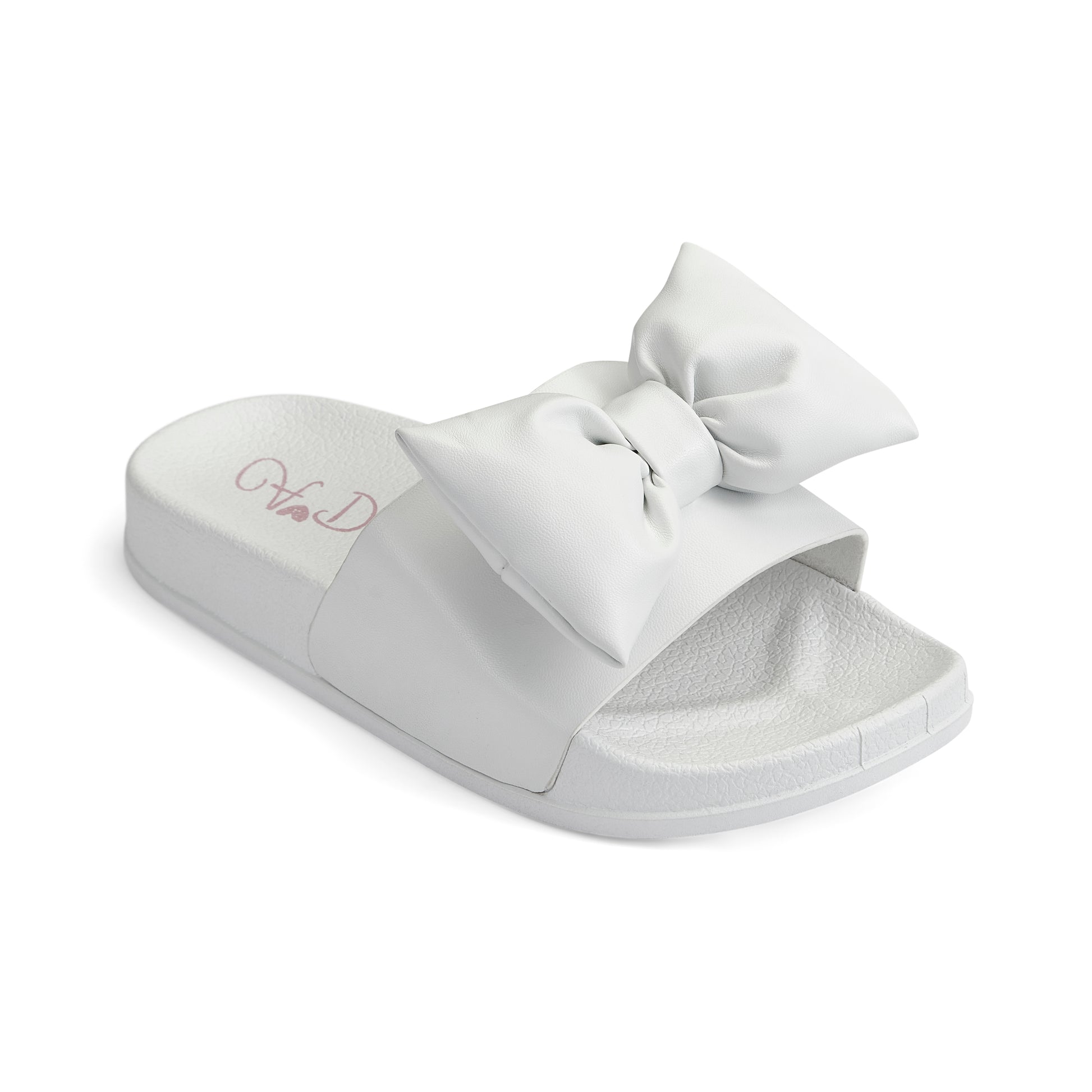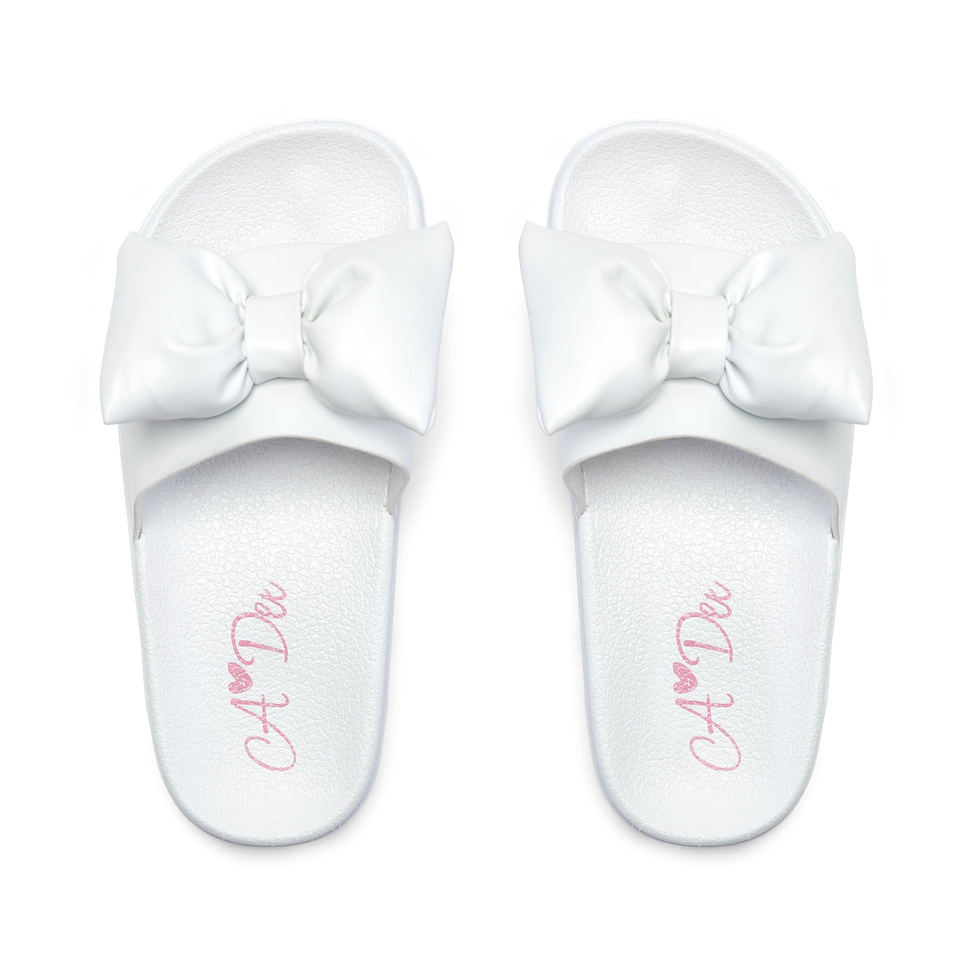 Perfect for holiday season, they Bowty sliders feature a bow applique on the front and have non-slip rubber soles.