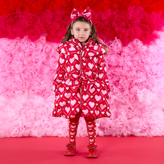 The Lauren padded jacket is perfect for the Winter season! It features our 'Love Story' print and a fit and flare shape as well as a large padded bow detail on the front. Finished with an oversized hood, a diamante zip fastening with branded puller and logo badge on the sleeve.
