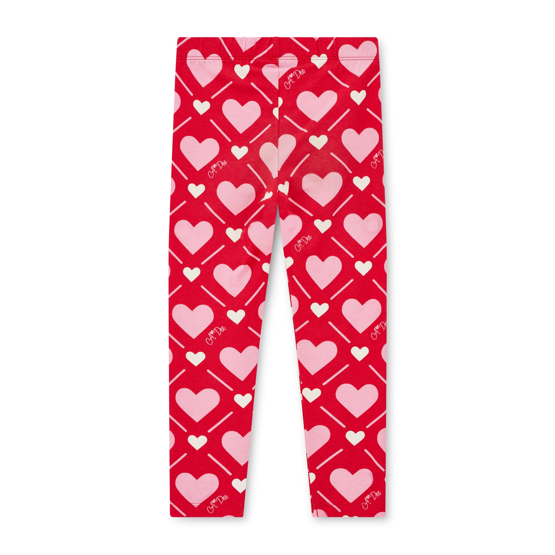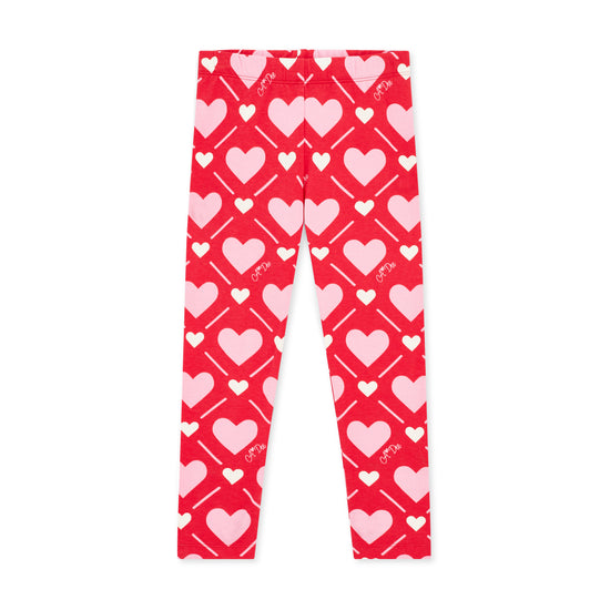 The Lola set features a red tunic top with a 'Love Story' print frilled heart and contrast printed back insert with bow detail. Paired with 'Love Story' printed leggings to complete the look!