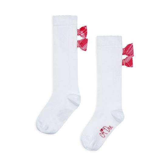 The Landon knee high socks are the perfect finishing touches to any look, featuring two checked bows on the side.