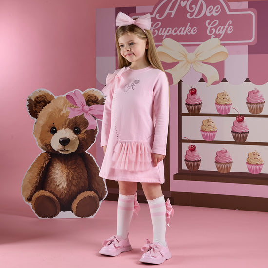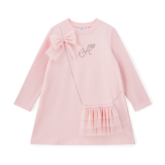 The Miracle jersey dress features a handbag applique artwork with a matching bow as well as diamante details to complete the look.