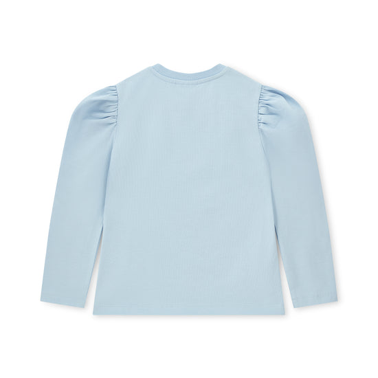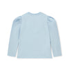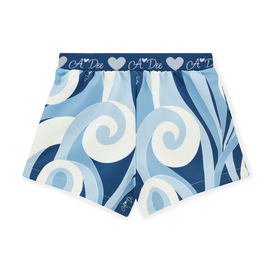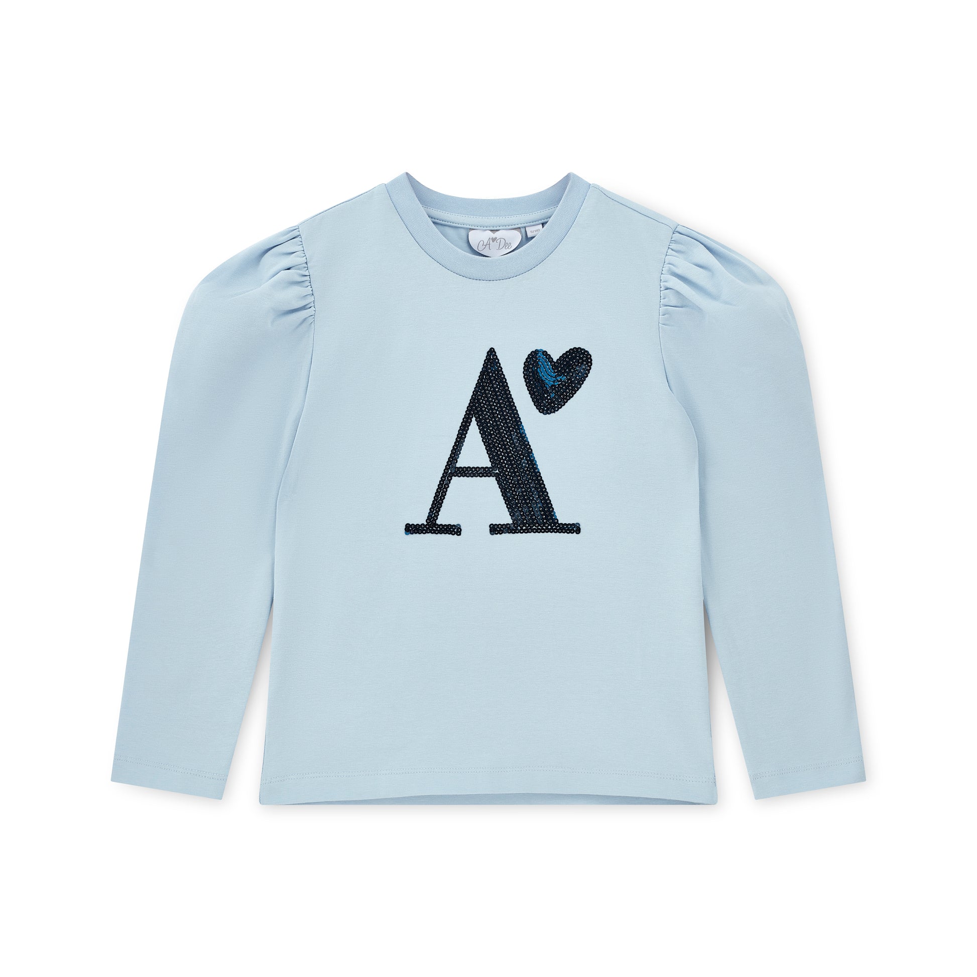 The Nova set includes swirls print elasticated branded waistband which has a cute bow applique detail in the middle! Paired with a long sleeve top with a sequin A on the front.
