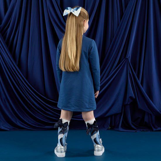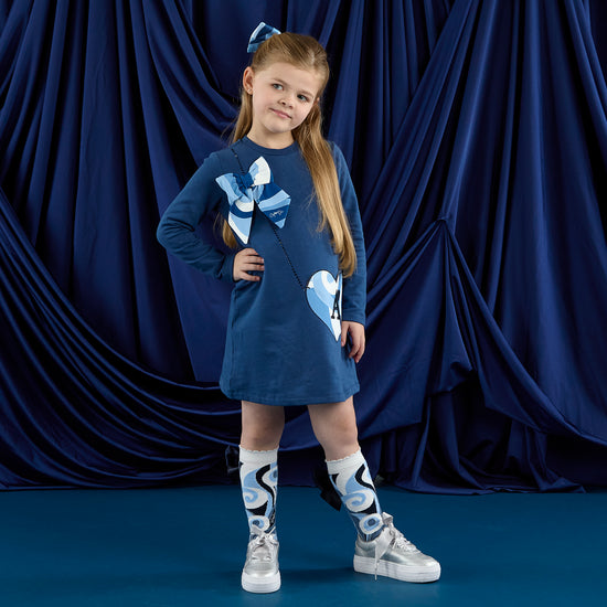 The Lotus jersey dress features a heart print frill applique handbag artwork and matching bow with diamante details to complete the look!