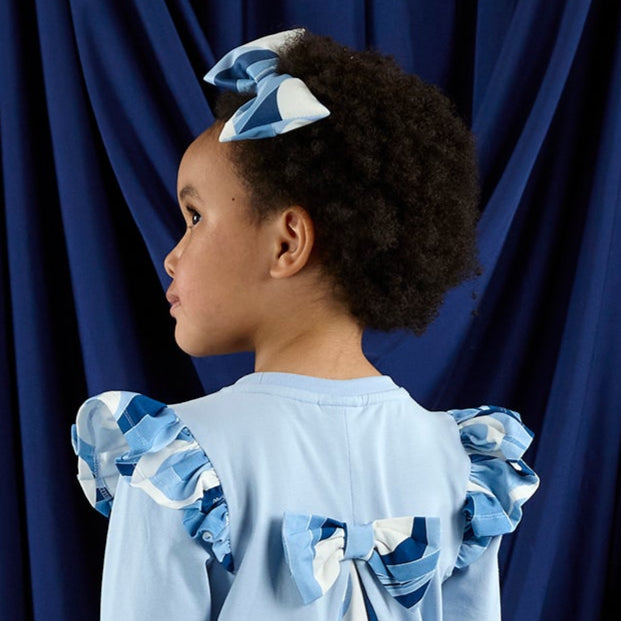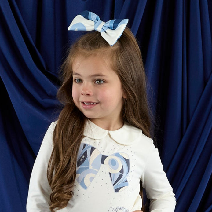Complete any Twilight Twirls outfit with the Leighton hair clip, featuring a printed swirls bow on a silver clip fastening.