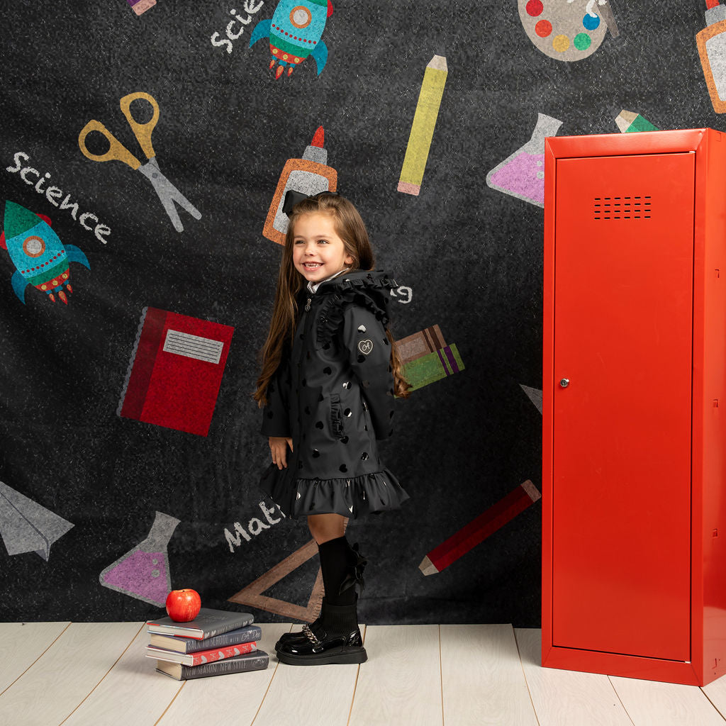The Stella is the must-have back to school raincoat! Stella features plenty of frills with frilled pockets and shoulders as well as a cute frilled hood. Complete with a silver reflective logo badge on one arm and a silver branded puller.